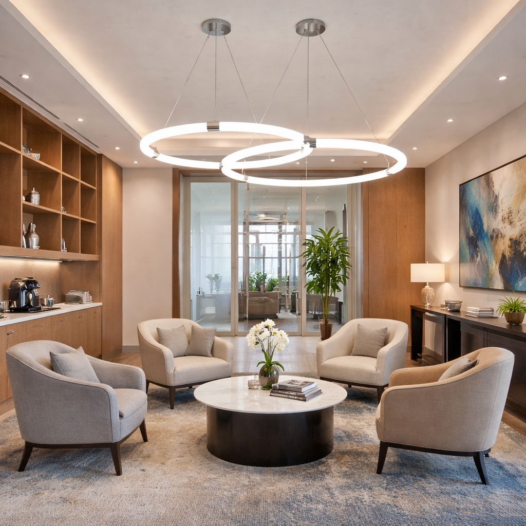 The Acrylic Glow Ring Collection features architectural luminaires crafted from premium optical-grade acrylic, delivering soft, uniform 360-degree illumination with refined visual clarity. Designed with seamless luminous profiles and precision metal components. Integrated high-efficiency LED technology ensures reliable performance, energy efficiency, and long service life. All fixtures are customizable in size, finish, suspension, and control options.