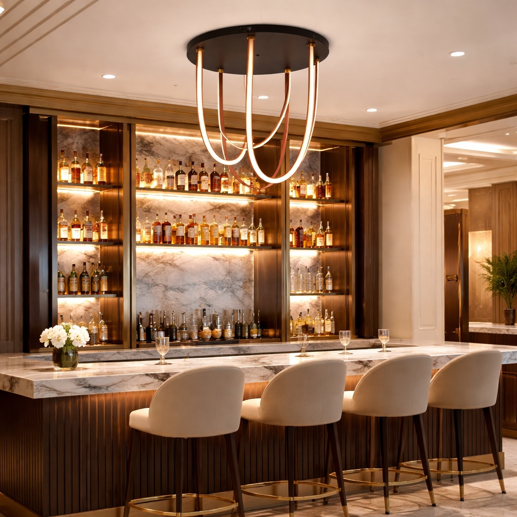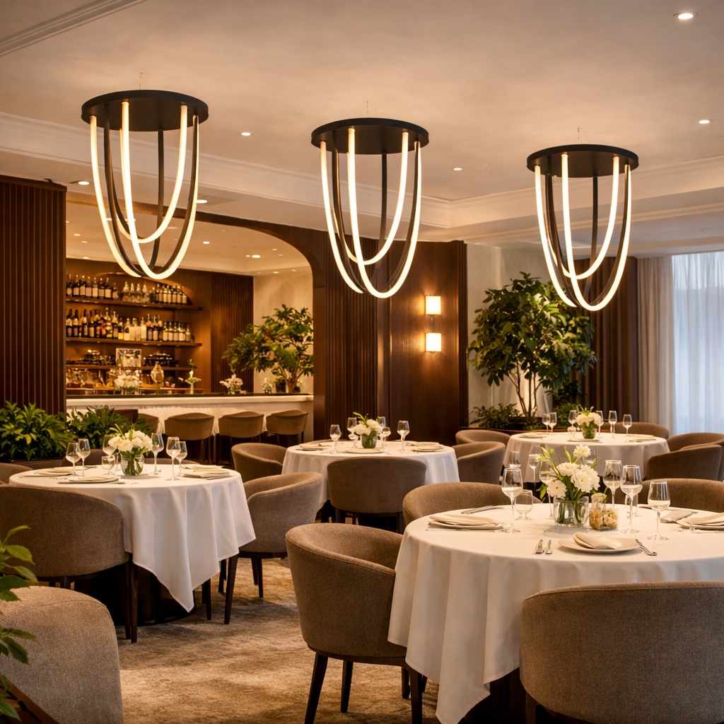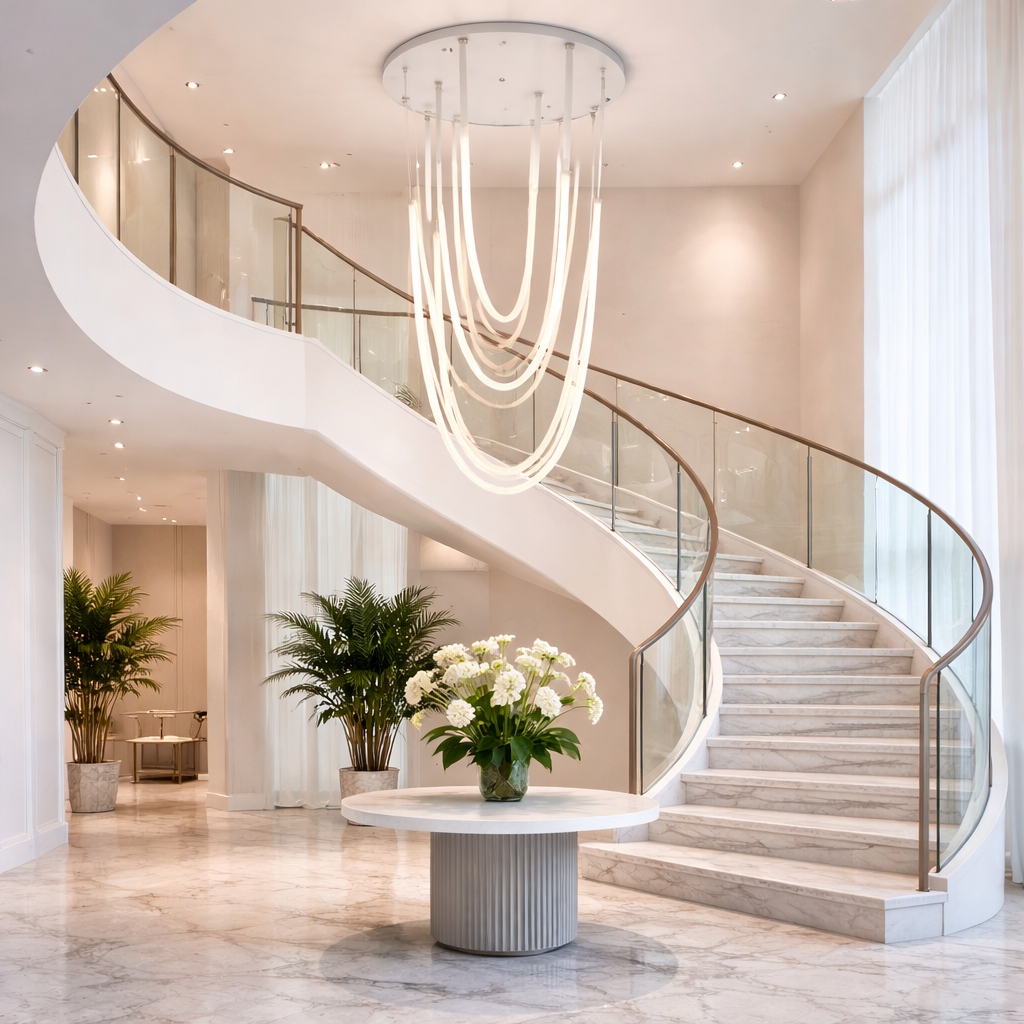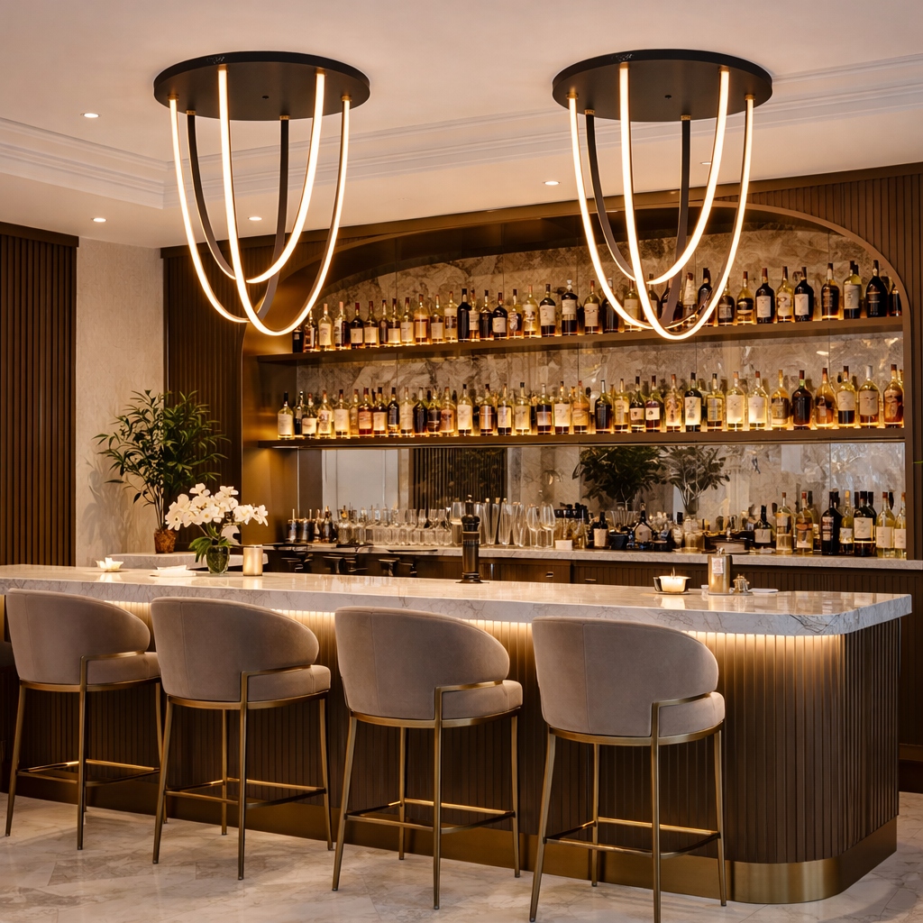 Alta Flush Drift redefines architectural ceiling lighting through sculptural leather and light. Hand-finished leather straps descend gracefully from a low-profile canopy, supporting soft, continuous luminous forms that feel both tailored and organic. The contrast of supple leather with refined metal detailing creates subtle movement, warmth, and visual depth even in compact ceiling applications. Designed as a refined statement flush mount, Flush Drift brings quiet sophistication to hotel corridors, luxury residences, and high-end hospitality interiors where elegance and performance must coexist.
