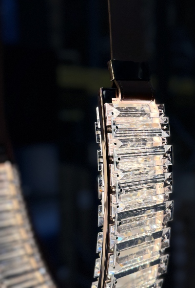 - Material: Leather straps, Crystal with integrated LED, Metal canopy.