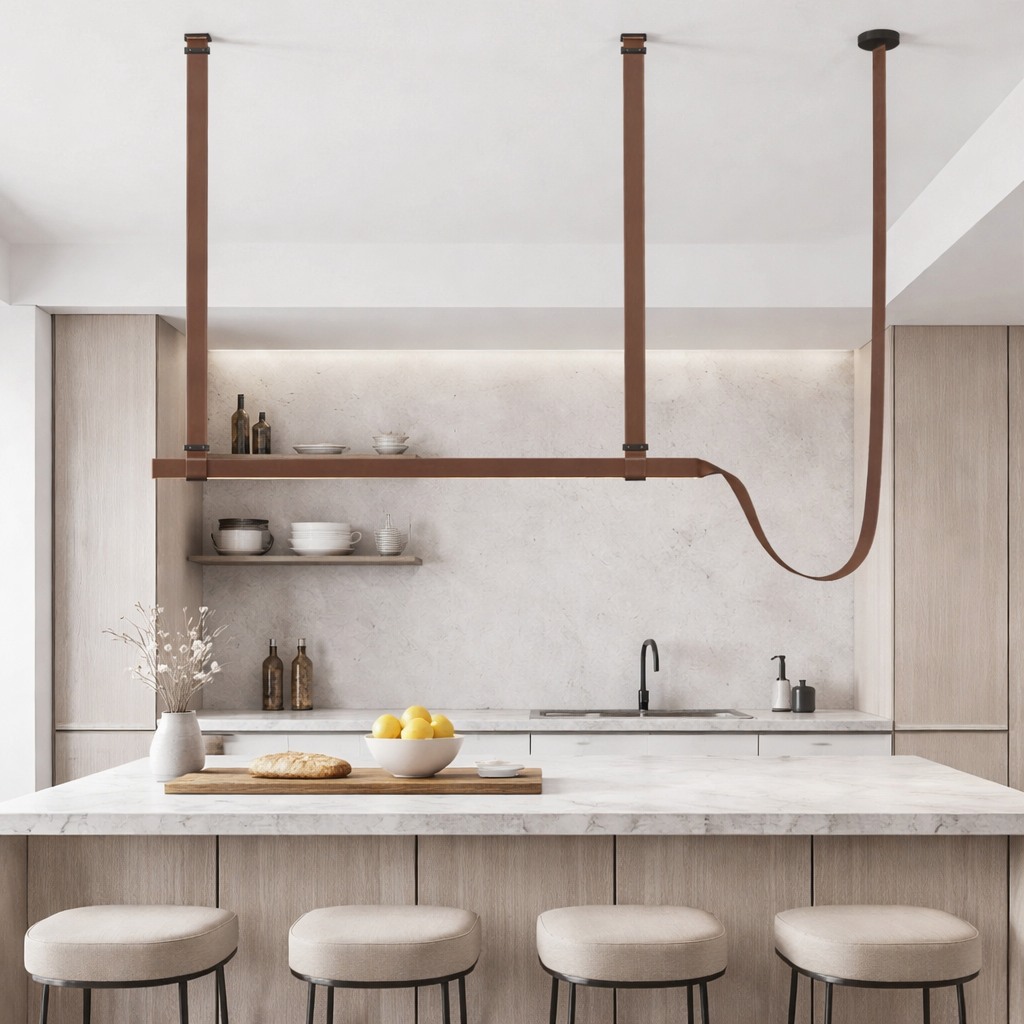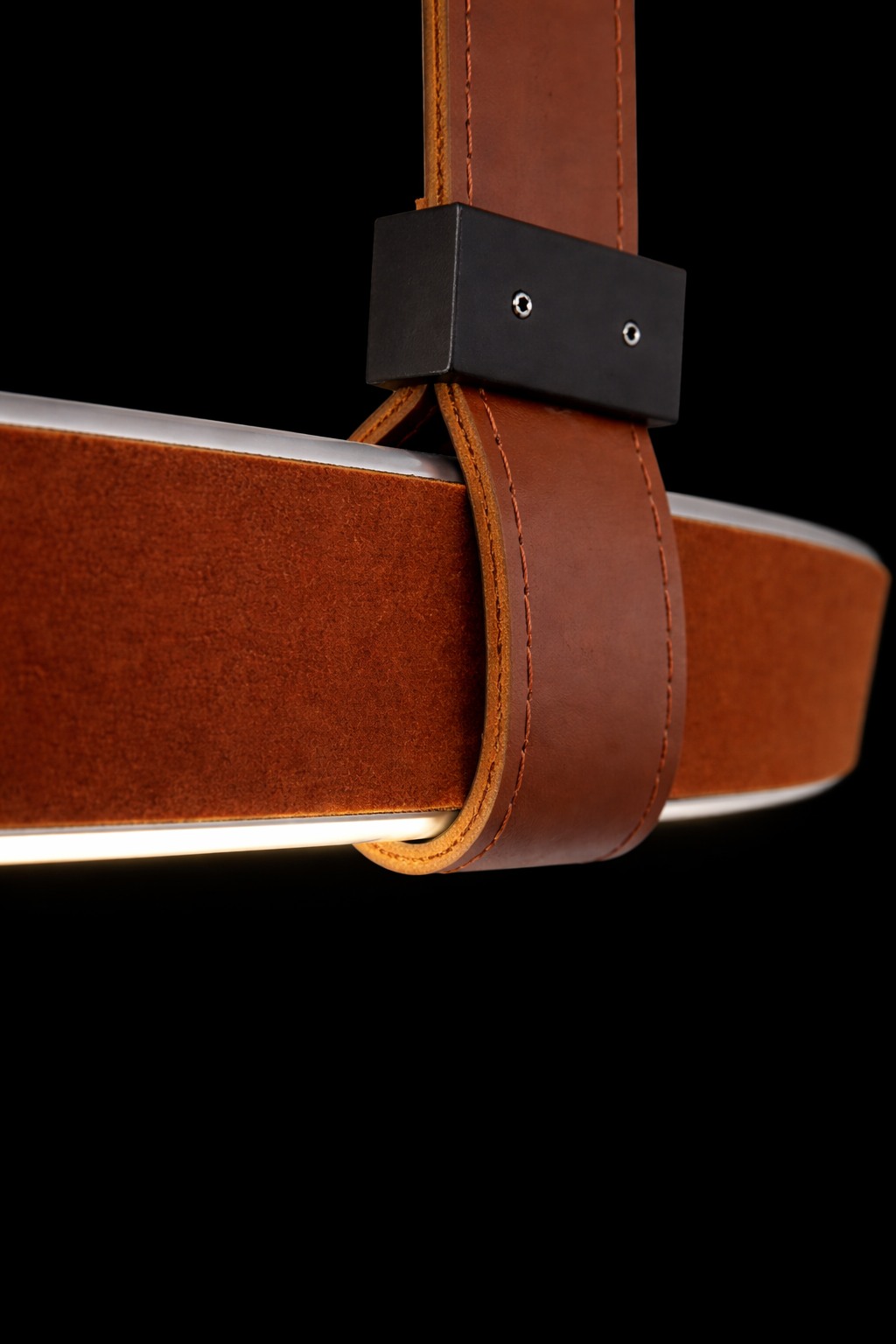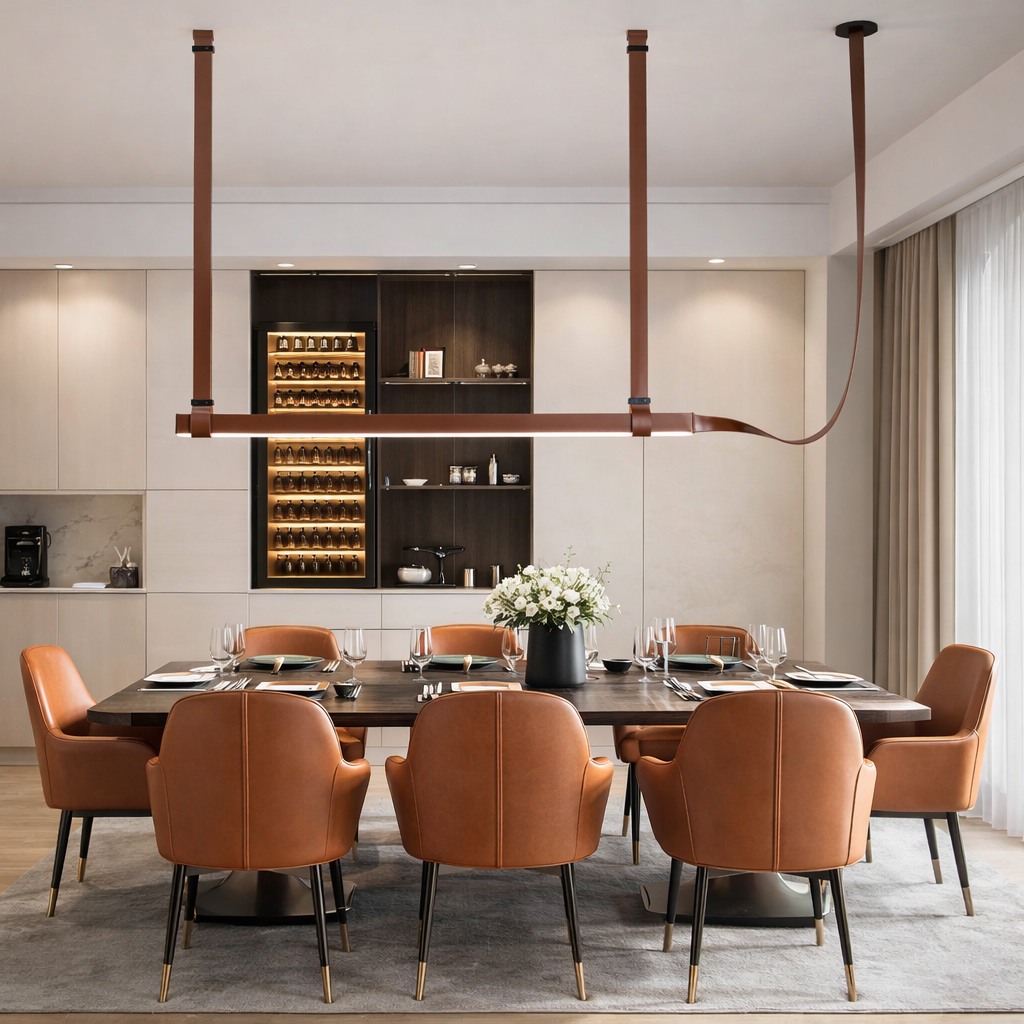 Alta Loop A refined expression of modern craftsmanship, this sculptural pendant combines supple leather suspension with a precision-formed aluminum ring. Clean geometry and balanced proportions create a light, architectural presence, while the warmillumination enhances material texture and spatial rhythm. Designed for contemporary interiors where elegance, structure, and detail matter.