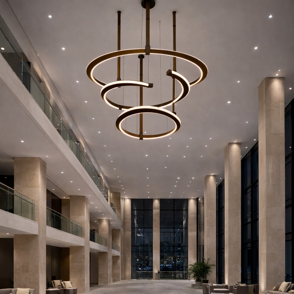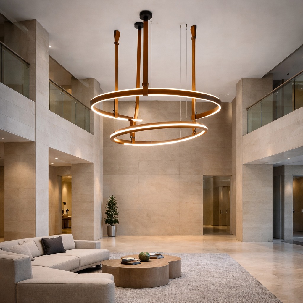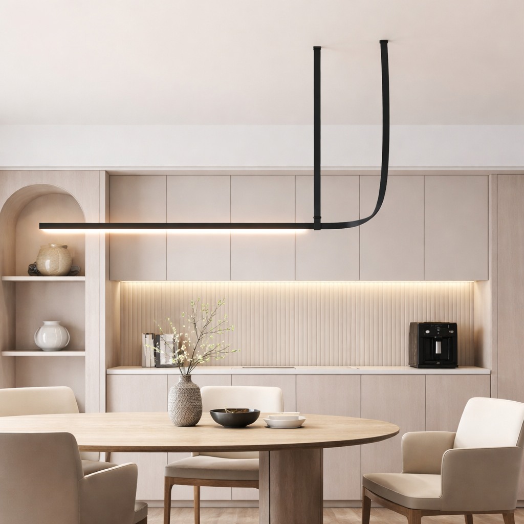 Alta Loop A refined expression of modern craftsmanship, this sculptural pendant combines supple leather suspension with a precision-formed aluminum ring. Clean geometry and balanced proportions create a light, architectural presence, while the warmillumination enhances material texture and spatial rhythm. Designed for contemporary interiors where elegance, structure, and detail matter.