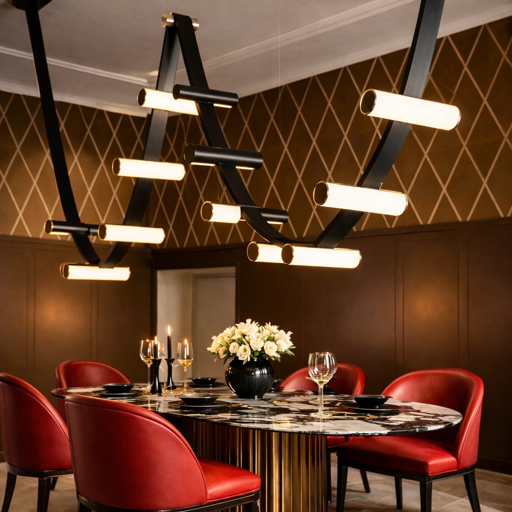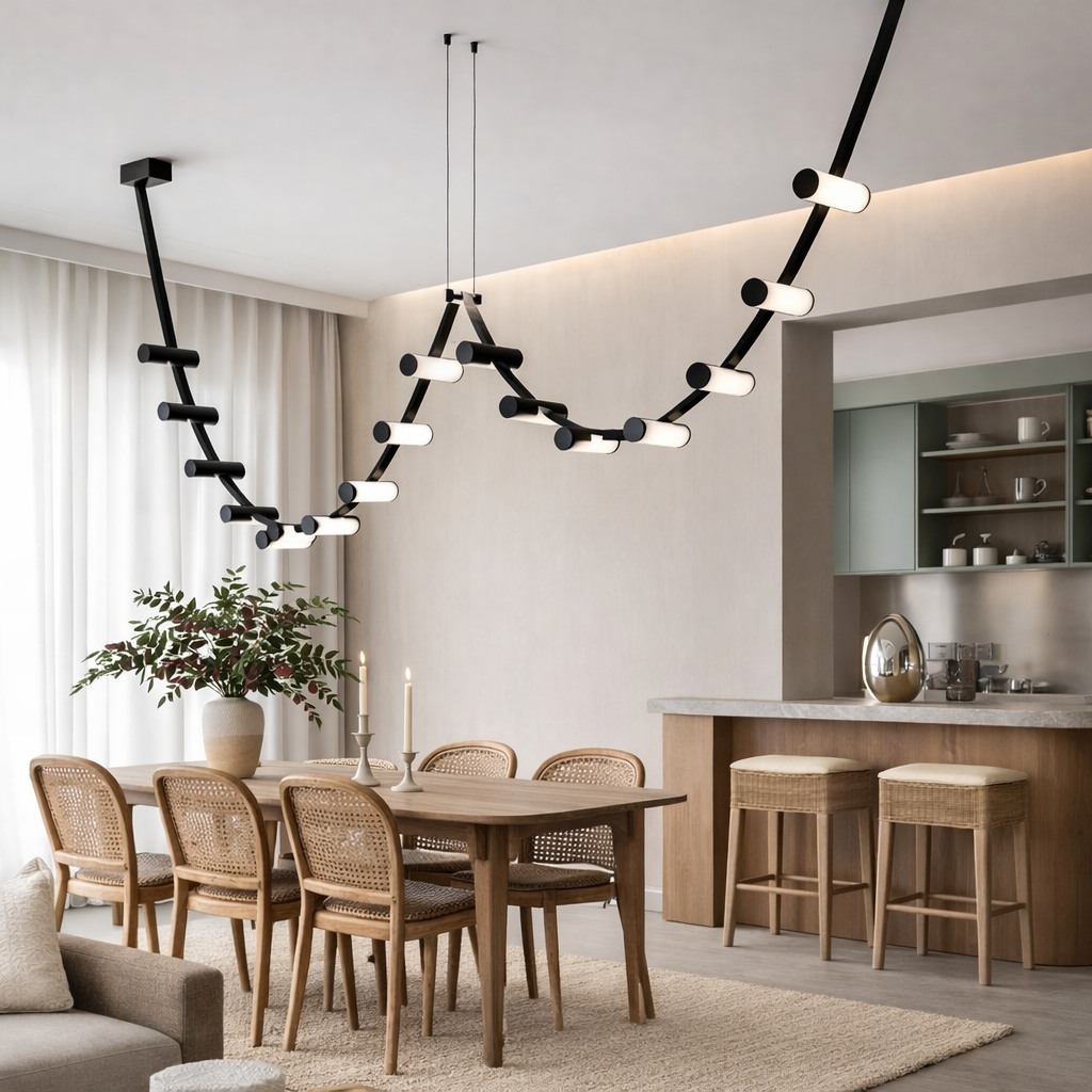 Alta Rhythm is a refined composition of leather and light, where hand-finished straps suspend softly illuminated acrylic elements in a graceful, rhythmic flow. Balancing architectural precision with warm materiality, it delivers a sculptural glow that elevates contemporary residential and hospitality interiors.