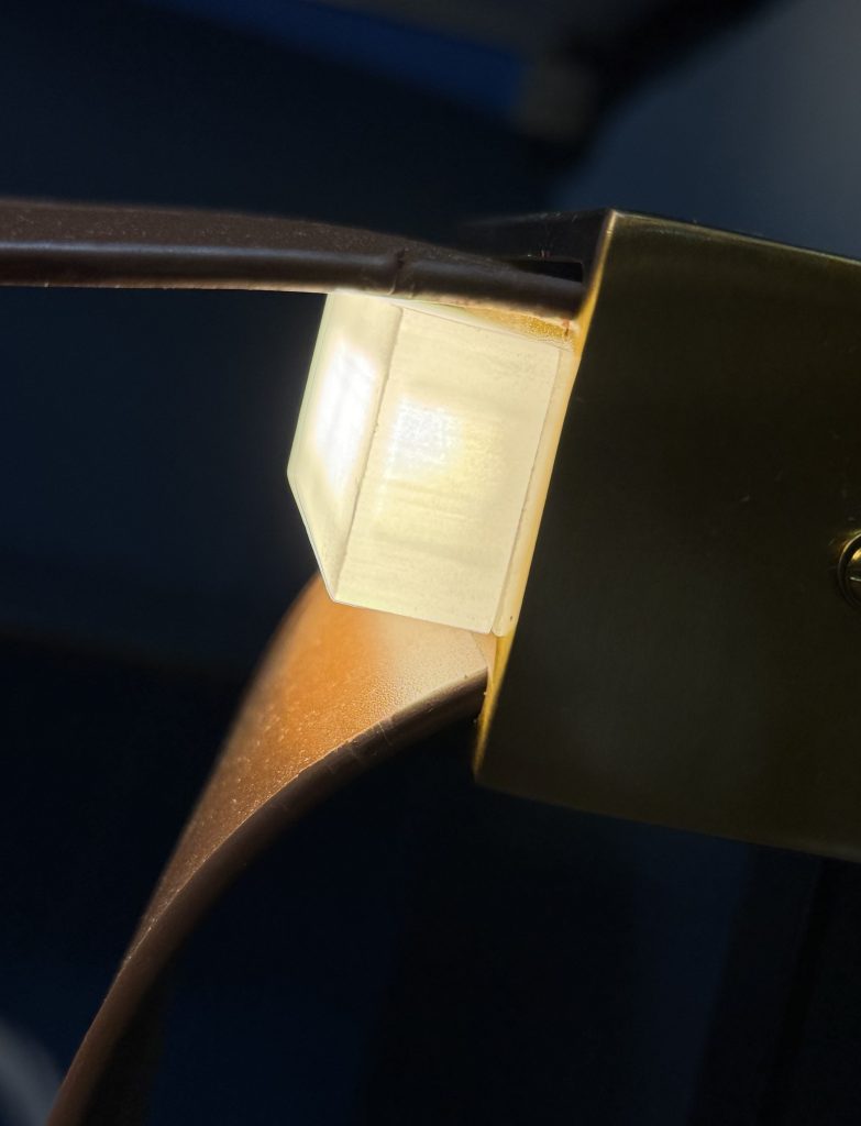 - Material: Aluminum, Leather straps, Frosted acrylic diffuser, Integrated LED module.