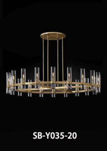 Andermatt Collection is a modern chandelier series featuring brushed brass frames and clear cylindrical glass shades with G9 LED light sources. Designed in modular ring and linear configurations, it delivers elegant ambient lighting with flexible installation options, ideal for hospitality, dining, and high-end residential spaces.