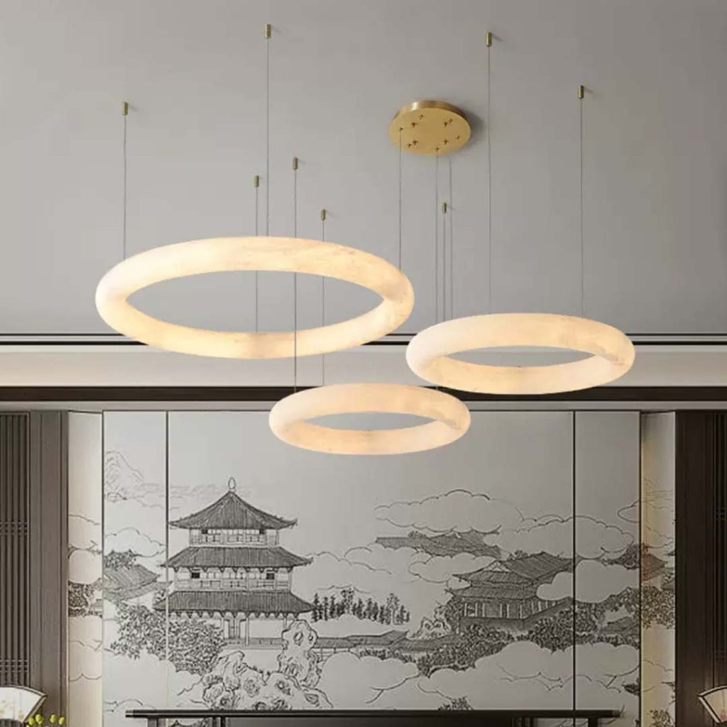 Breckenridge-A glorious glow Natural Marble Ceiling Chandelier range of 19.70”, 23.60”, 31.50”,39.40”, 6500 color finishes and suspension cable different lengths are available. 2700K/3000K/3500K/4000K Field color selectable by selector switch. RGBW and CCT tunable / dimmable using remote, DMX , App and Google Alexa