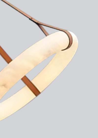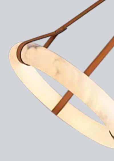 Breckenridge-B glorious glow Natural Marble Leather Straps Ceiling Chandelier range of 19.70”, 23.60”, 31.50”, 39.40”, 6500 color finishes and suspension cable different lengths are available. 2700K/3000K/3500K/4000K Field color selectable by selector switch. RGBW and CCT tunable / dimmable using remote, DMX , App and Google Alexa