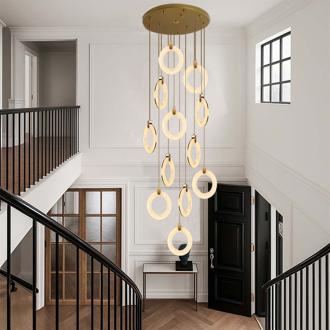 This pendant features a handcrafted round alabaster shade that softly diffuses light, creating a warm and inviting ambiance. The brass-finished holder adds a touch of sophistication, making it perfect for modern and contemporary interiors.
