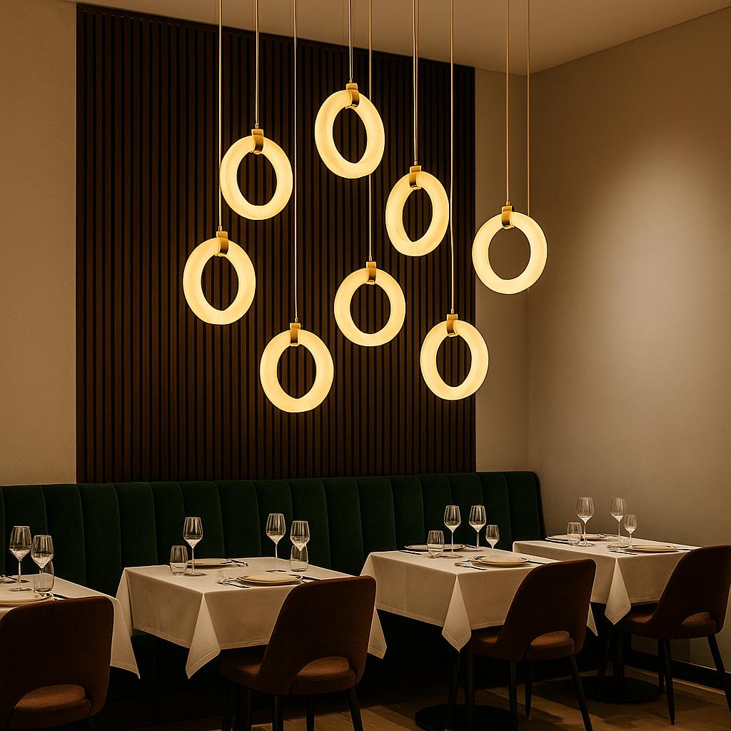 This pendant features a handcrafted round alabaster shade that softly diffuses light, creating a warm and inviting ambiance. The brass-finished holder adds a touch of sophistication, making it perfect for modern and contemporary interiors.