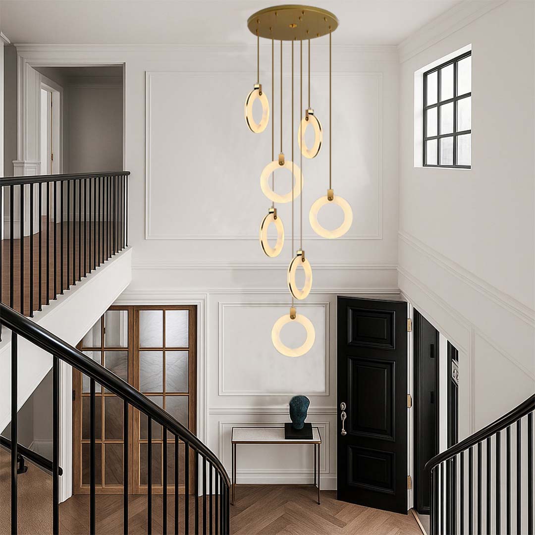 This pendant features a handcrafted round alabaster shade that softly diffuses light, creating a warm and inviting ambiance. The brass-finished holder adds a touch of sophistication, making it perfect for modern and contemporary interiors.
