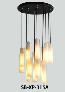A sleek cylindrical pendant crafted from natural alabaster, showcasing soft veining and a warm, diffused glow. Its minimalist form and gentle illumination add refined elegance to kitchens, hallways, and modern hospitality spaces.