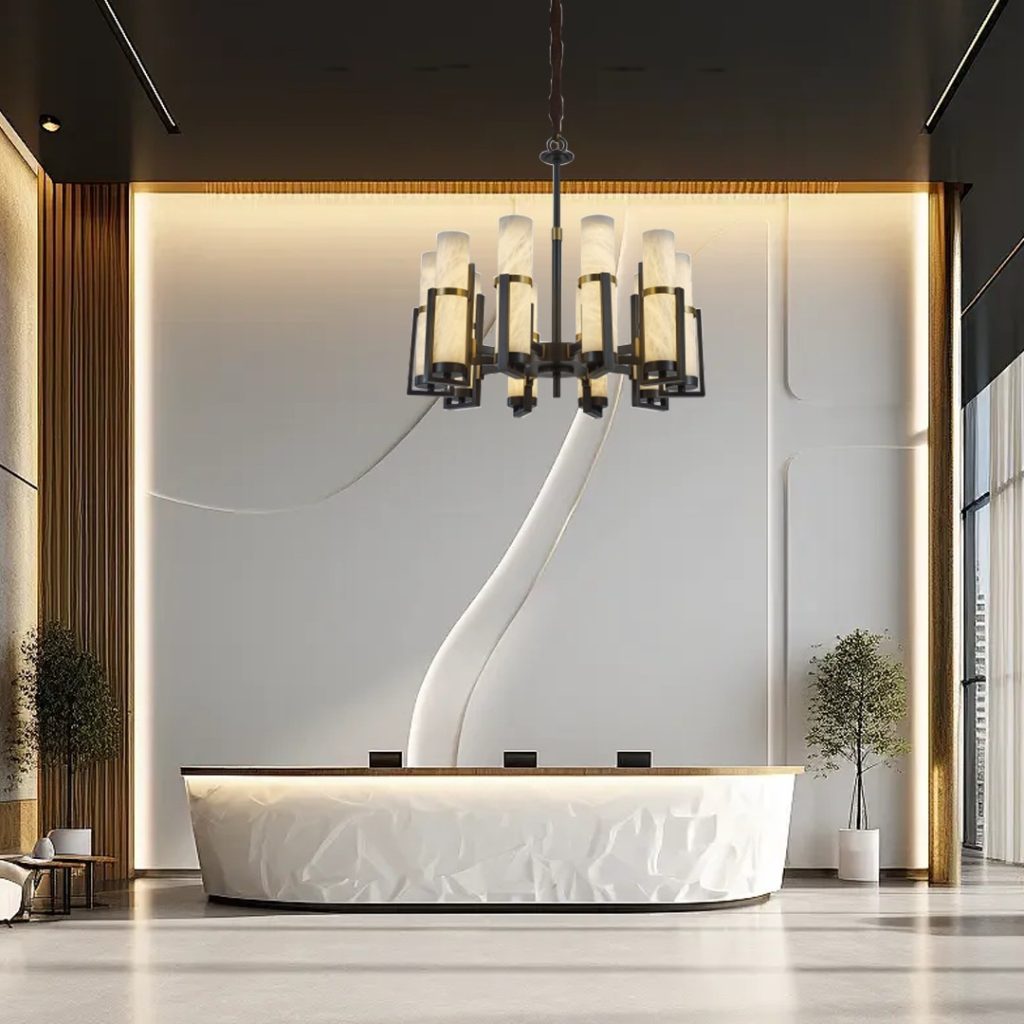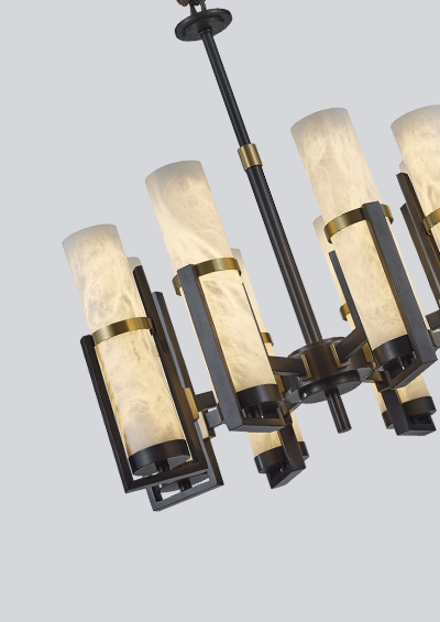 Natural Marble fixture, Metal finishes: Black and Aged Brass. Custom finishes available. 22.44” 8 / E12 (Max 12W each bulb, not included). 25.59” 10 / E12 (Max 12W each bulb, not included).