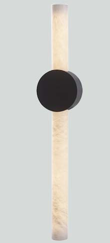 This ultra-modern alabaster wall sconce showcases a slender cylindrical stone diffuser illuminated end-to-end, anchored by a clean circular mount. When lit, the alabaster reveals elegant natural veining, filling the space with warm ambient light and subtle luxury. Ideal for boutique hotels, upscale residences, spa environments, gallery walls, and architectural spaces requiring a statement yet minimalist feature.