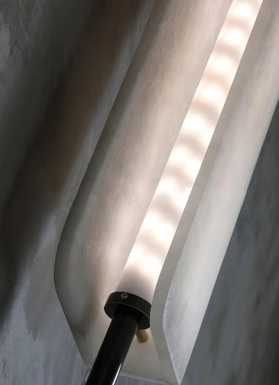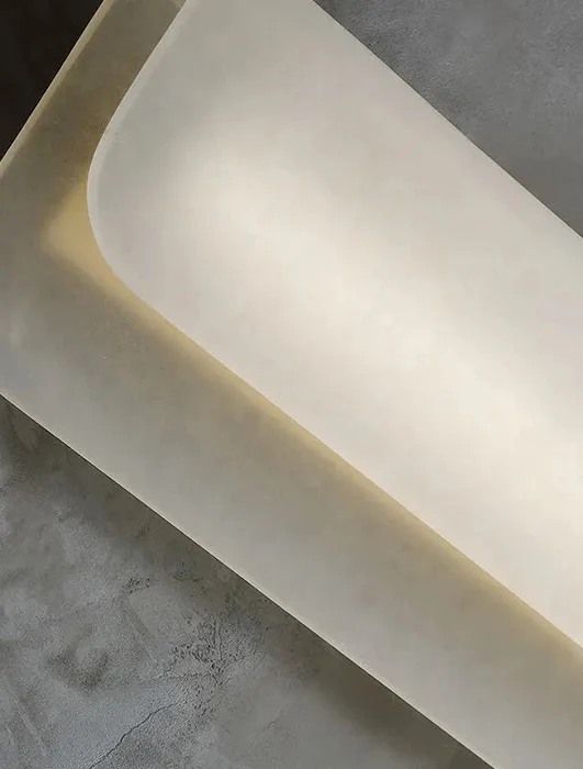 Crafted from hand-selected alabaster, this wall sconce showcases a stunning fusion of nature and modern elegance. The light radiates softly through the stone, highlighting its unique veining while a sleek brushed brass bar adds architectural definition and luxury presence. Ideal for upscale hotels, residential projects, spas, and refined commercial interiors. This piece doubles as both illumination and art — minimal, timeless, and beautifully atmospheric.