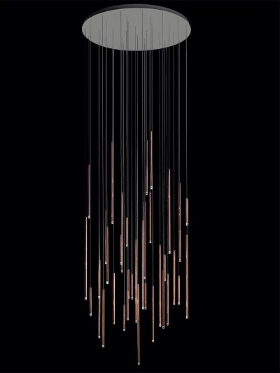 Each Chamonix B pendant element is machined from a block of aluminum. It features a direct lighting component and is available with 1 to 35 elements or more. Flat lens, acrylic, and bubble acrylic options are available. Over 6,500 color finishes and suspension cable lengths are offered. Ships fully assembled.