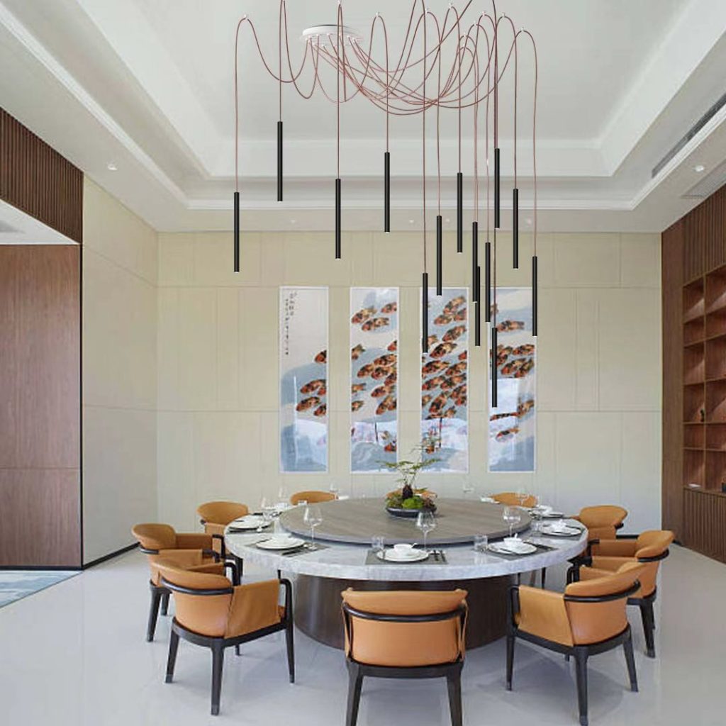 Each Chamonix B pendant element is machined from a block of aluminum. It features a direct lighting component and is available with 1 to 35 elements or more. Flat lens, acrylic, and bubble acrylic options are available. Over 6,500 color finishes and suspension cable lengths are offered. Ships fully assembled.