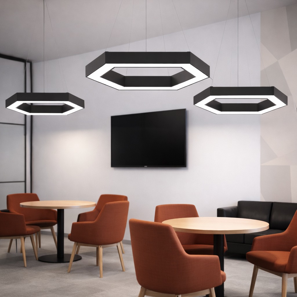 - Suspended on 10’ adjustable length cables, custom cable lengths available.