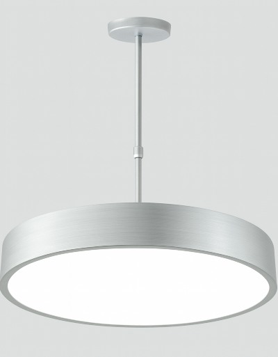 This contemporary drum pendant features a clean circular form with a smooth metal housing and a softly diffused luminous surface. The minimalist silhouette delivers balanced, glare-free illumination while maintaining a refined architectural presence. Ideal for residential, hospitality, and commercial interiors, it offers timeless simplicity with modern sophistication.