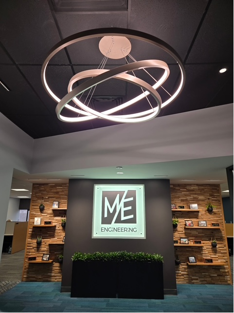 At the ME Engineering Buffalo office, the Kimberley ring (SB-S03C) brings a fresh, contemporary lighting statement to the workspace. Provided by Glacier Lighting and specified through Point Source Group, this sleek, suspended fixture delivers a soft, even illumination that enhances visual comfort while complementing the office’s clean, professional design. Its minimalist form and refined glow create an atmosphere that feels both focused and inviting, seamlessly supporting day-to-day productivity with a touch of modern sophistication.
