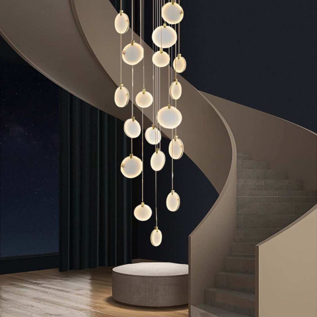 Each Chamonix pendant element is roughly 2″ dia. by 17″ high. It is machined from a block of aluminum. It has an indirect and direct lighting component. Available with 6 to 40 elements or more. Naturally custom configurations are available. Over 6,500 color finishes and suspension cable lengths are available. 3000K/3500K/4000K selectable by switch or Tunable White / Dimmable. Ships assembled.