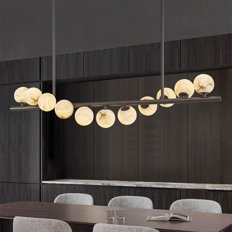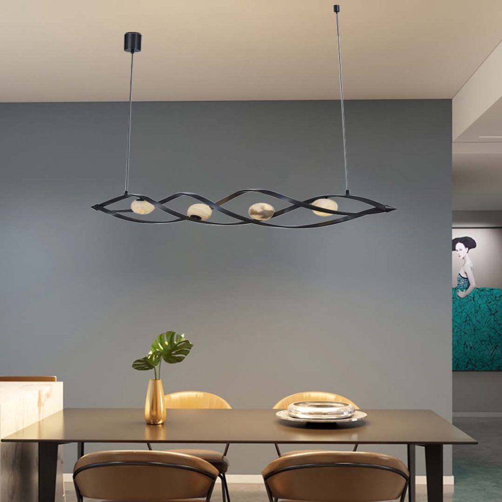 Fluid lines and rhythmic curves define the Wave series. Sculpted metal forms cradle alabaster elements, creating a graceful, flowing silhouette that brings movement and warmth to modern interiors.