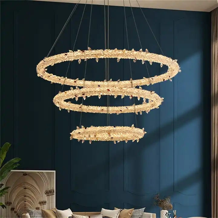 Each design is conceived as a sculptural form: rings, arrays, and layered compositions that float effortlessly in space. Integrated LED technology delivers uniform illumination while allowing the crystal to refract light with depth and clarity, creating a refined atmosphere rather than overt opulence.