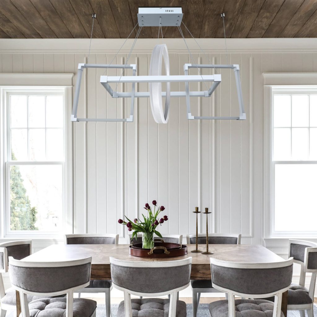 This collection features sculptural arrangements of linear light—intersecting, layered, and suspended—to create visually striking compositions that remain elegant and precise. Whether expressed through angular frames, circular forms, or multi-tiered configurations, the geometry itself becomes the focal point, with light seamlessly integrated into the structure.