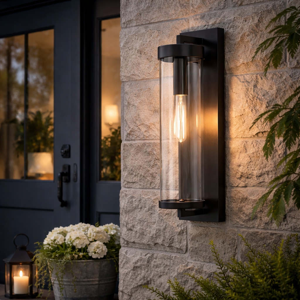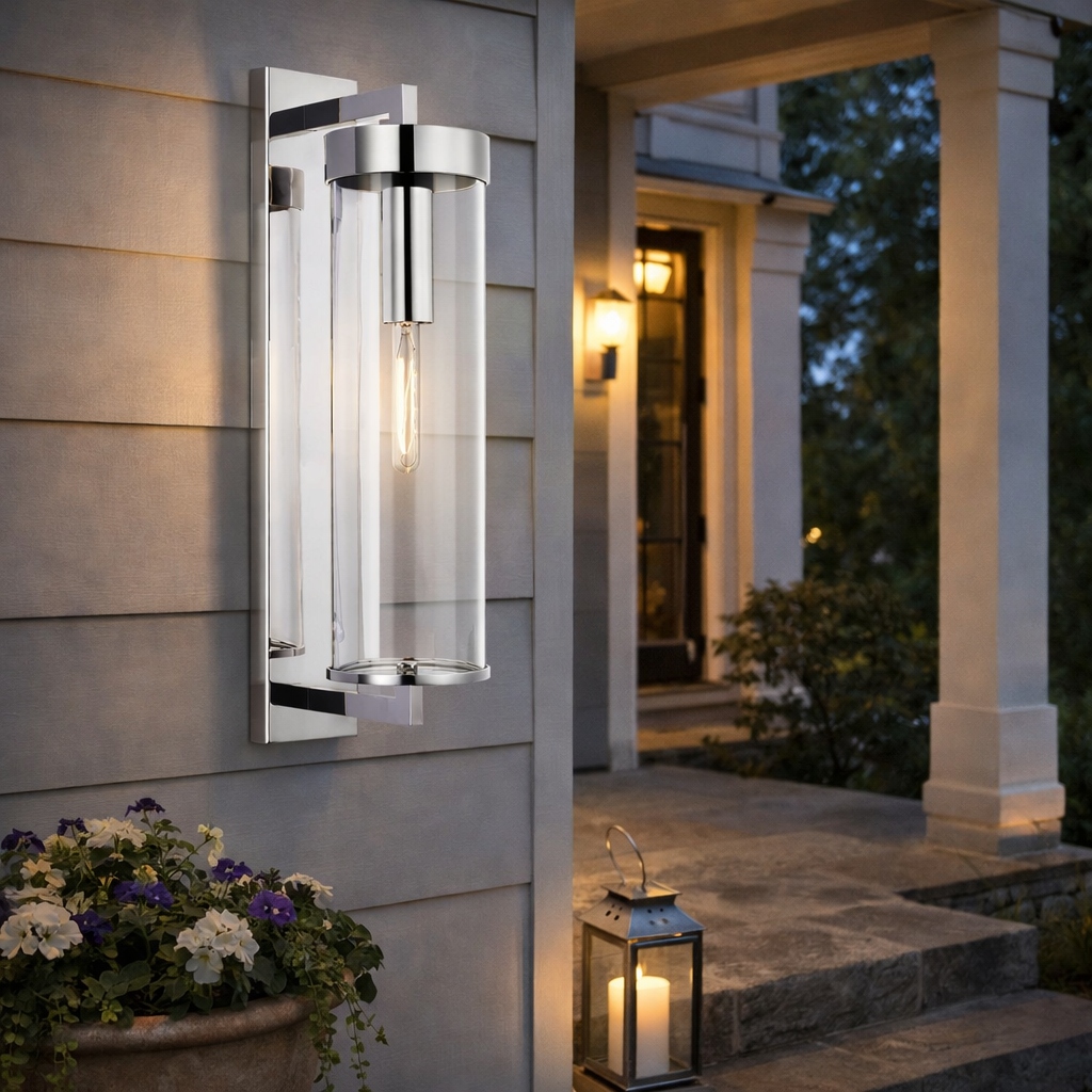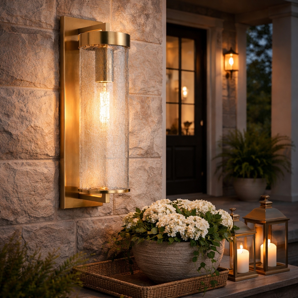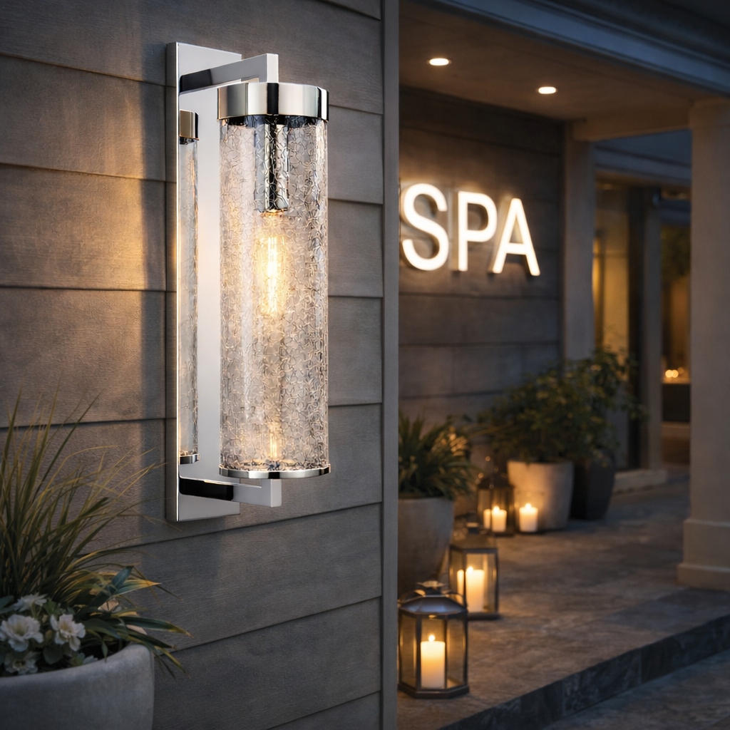 Inspired by alpine resort architecture, the SAAS-FEE Collection combines elegant cylindrical glass with robust metal framing to create a timeless outdoor wall sconce. Available in clear and crackle glass options, the collection offers soft, ambient lighting that enhances exterior spaces with warmth and sophistication.