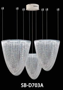 - One continuous ring without joints. Extruded aluminum housing up to 71.65” diameter, standard height 39.37″, custom crystal chain lengths available.