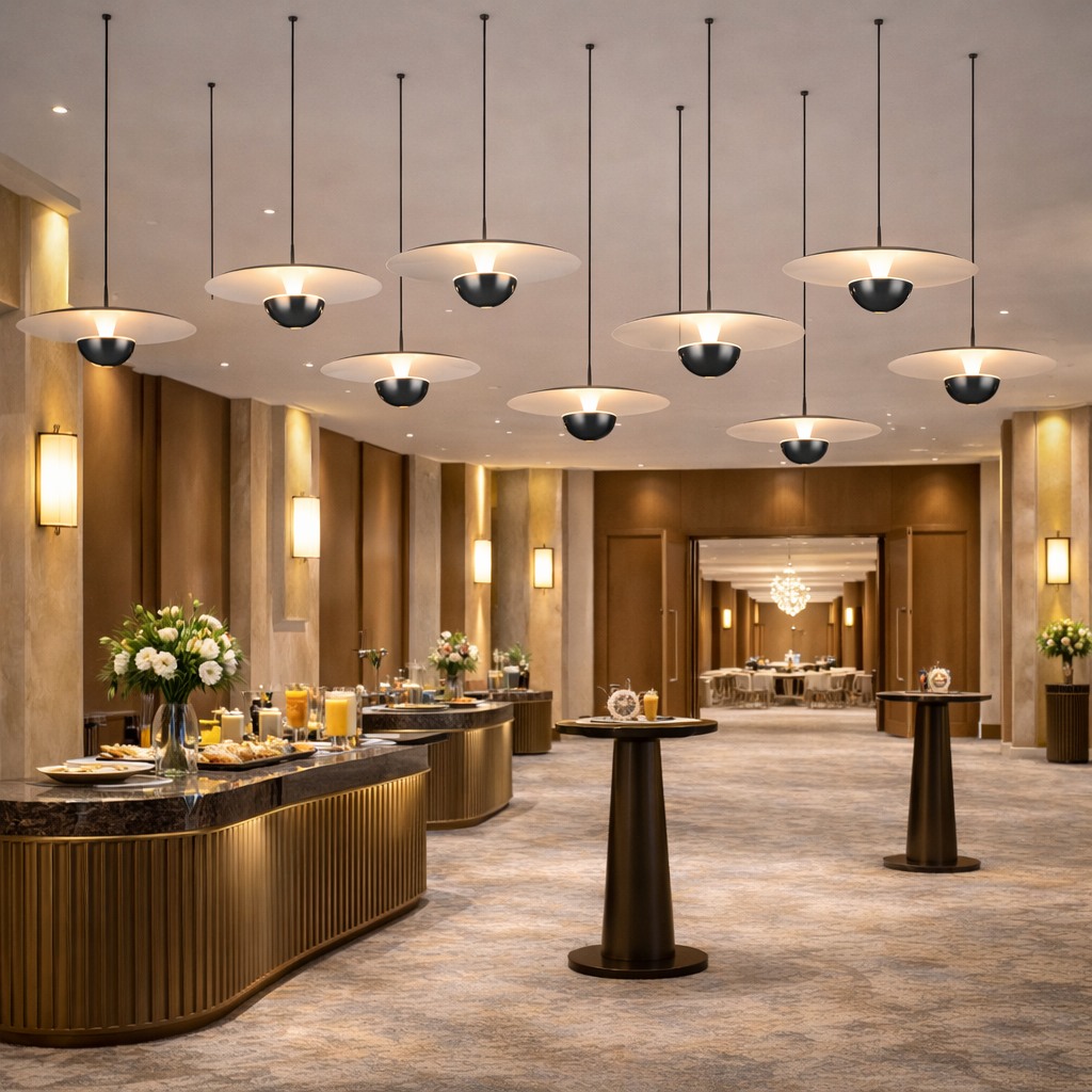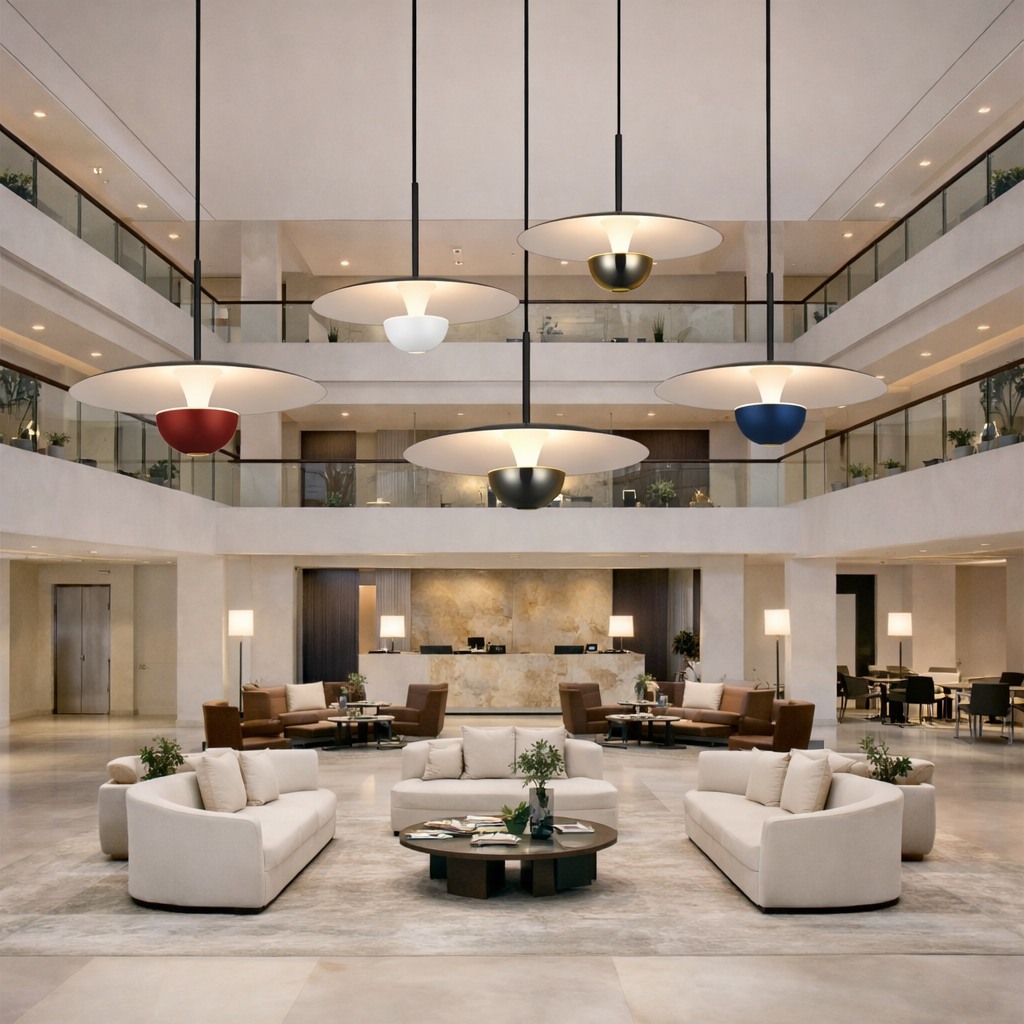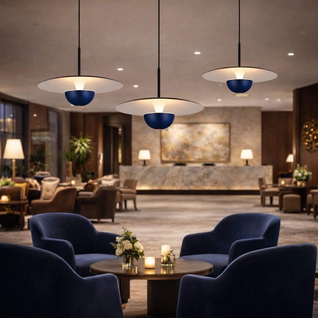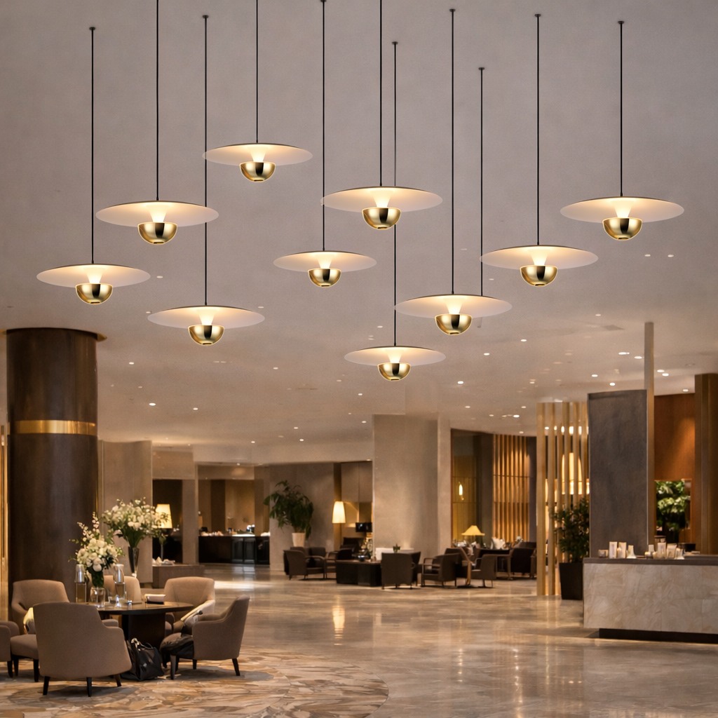 This contemporary pendant collection features a refined disc profile paired with a softly illuminated central element, creating a warm, atmospheric glow. Offered in a range of elegant finishes, the design balances sculptural form with subtle sophistication. Ideal for layered installations in dining areas, lounges, and hospitality spaces, these pendants deliver a modern statement with timeless appeal.