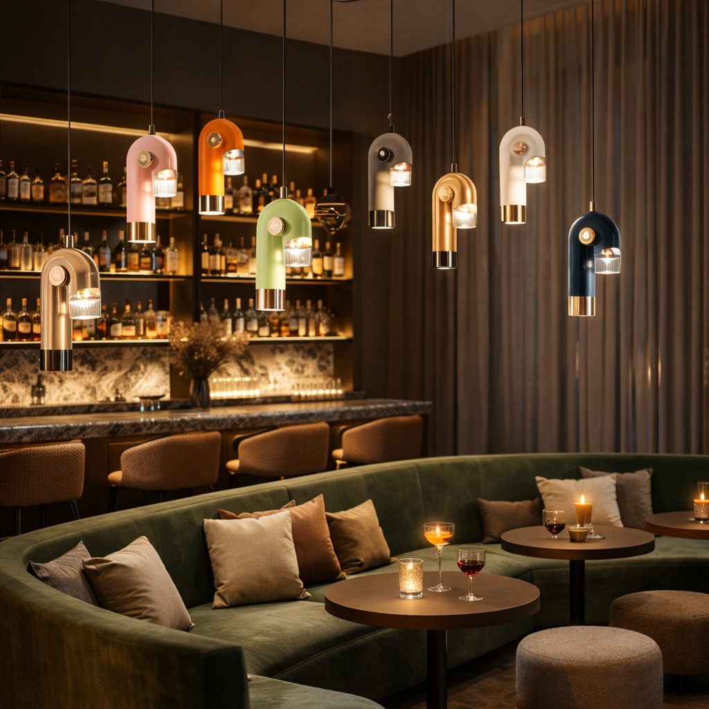 Each drop features a precision-formed aluminum body paired with an acrylic diffuser, delivering warm, focused illumination with clean, architectural clarity.