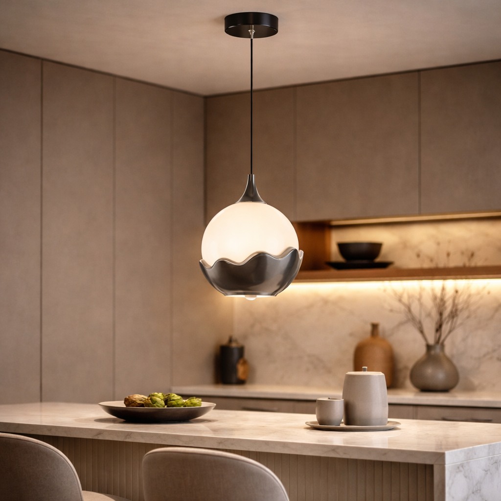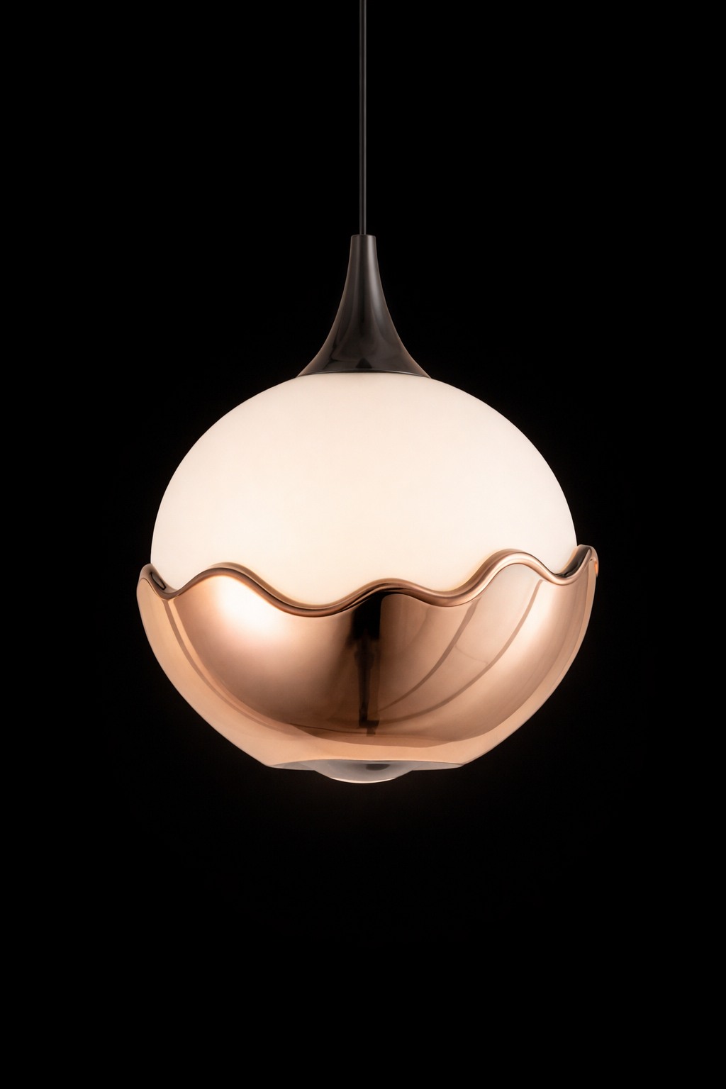 Zermatt Core is a refined pendant that balances sculptural elegance with modern precision. A softly diffused opal globe is cradled by a fluid, wave-formed metal shell, creating a harmonious contrast between light and structure. Designed to deliver warm, comfortable illumination, Zermatt Core brings a quiet luxury to hospitality, residential, and design-forward interiors.
