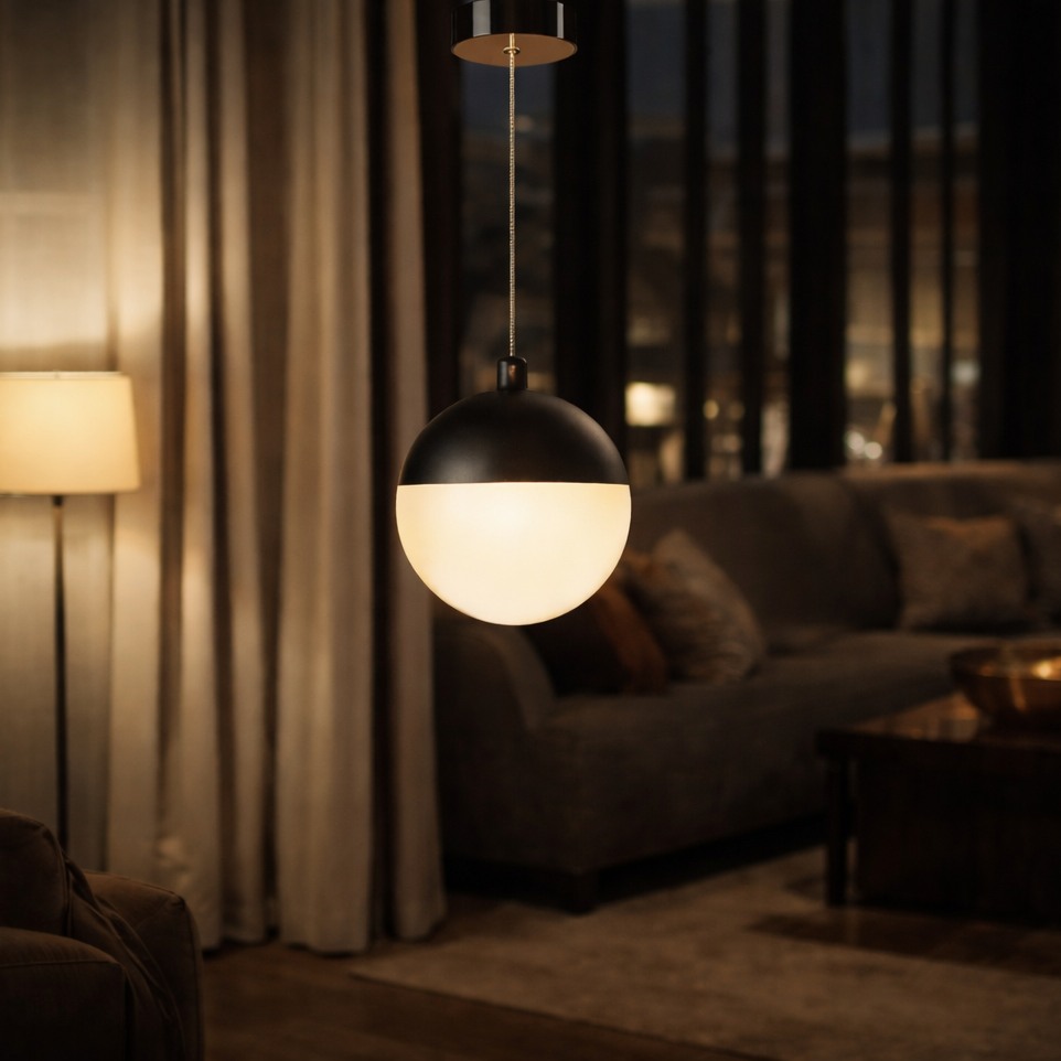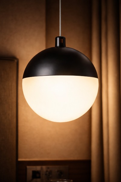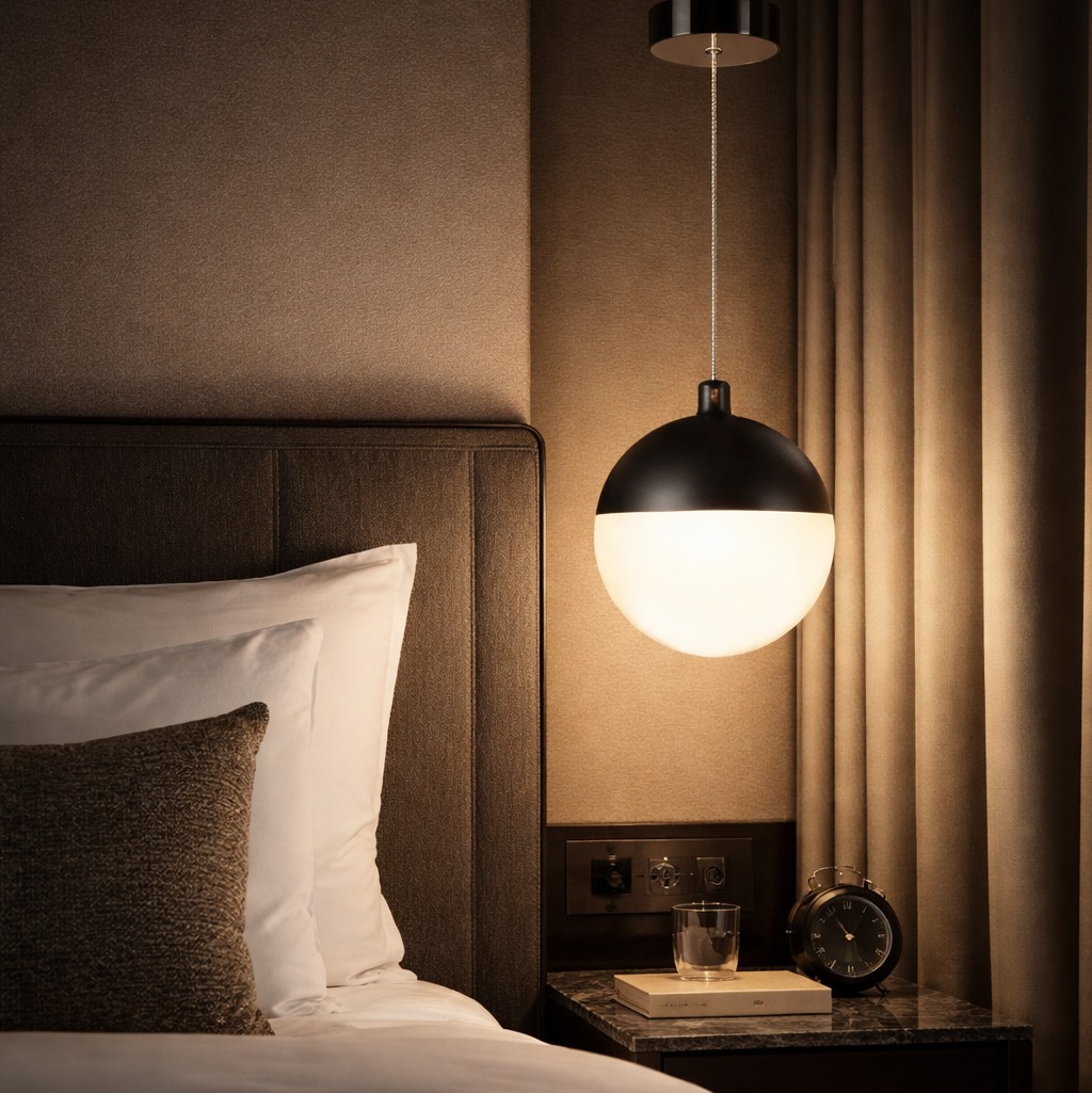 Zermatt Globe is a refined pendant combining a precision-crafted aluminum dome with a softly diffused acrylic globe. Clean lines and balanced proportions create a warm, elegant glow—ideal for luxury hospitality, boutique residential, and modern architectural interiors.