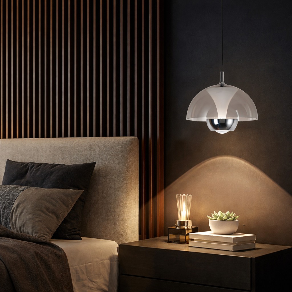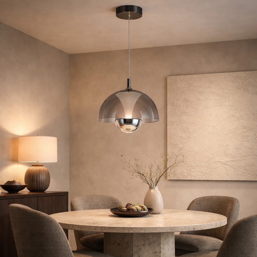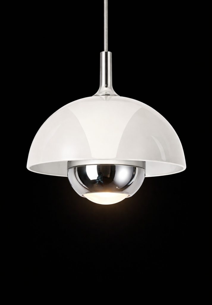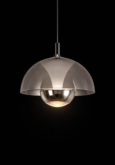 Zermatt Melt pairs a sculpted aluminum dome with a reflective inner core, shaping light into a warm, refined glow. Its sleek form and subtle contrast bring understated luxury to modern hospitality and architectural spaces.